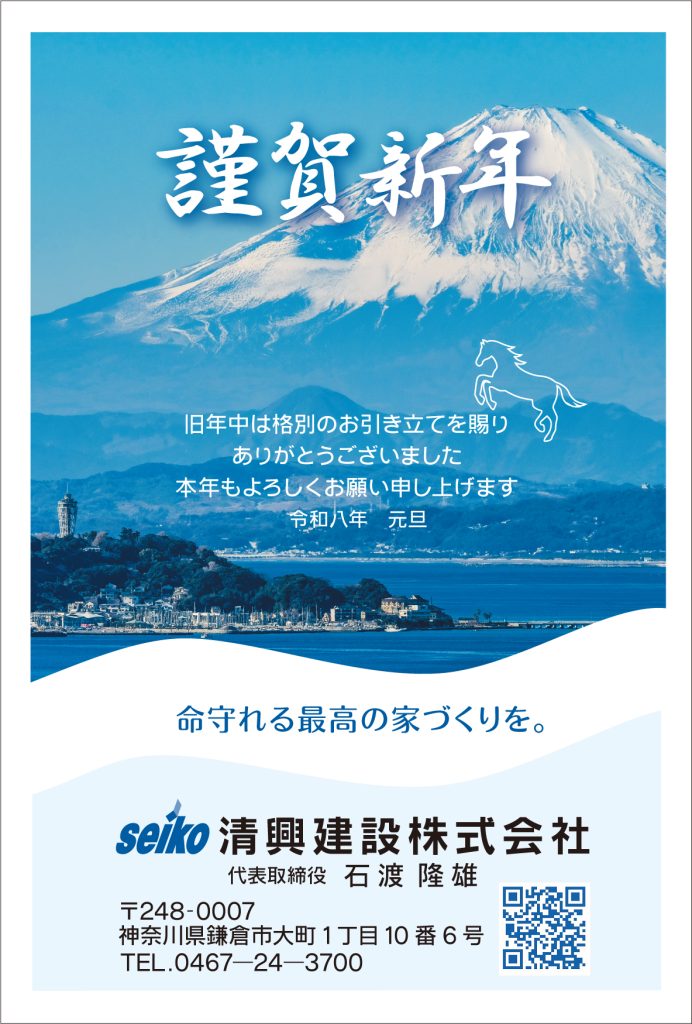 新年のごあいさつ 新年明けましておめでとうございます☀️🎍 旧年中は格別なご高配を賜り まことに有難く厚く御礼申し上げます 2026年もサービス向上に尽力して参ります 皆様のご健勝とご発展をお祈り申し上げます 本年も宜しくお願い申し上げます お気軽にお問い合わせ下さい 清興建設株式会社 〒248-0007 神奈川県 鎌倉市大町1-10-6 TEL.0467-24-3700 お問い合わせ 営業時間/AM9:00~PM5:00定休日/水曜・日曜・祝日